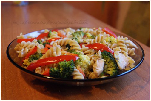 Makaron z rybą, brokułami i papryką /1 porcja/